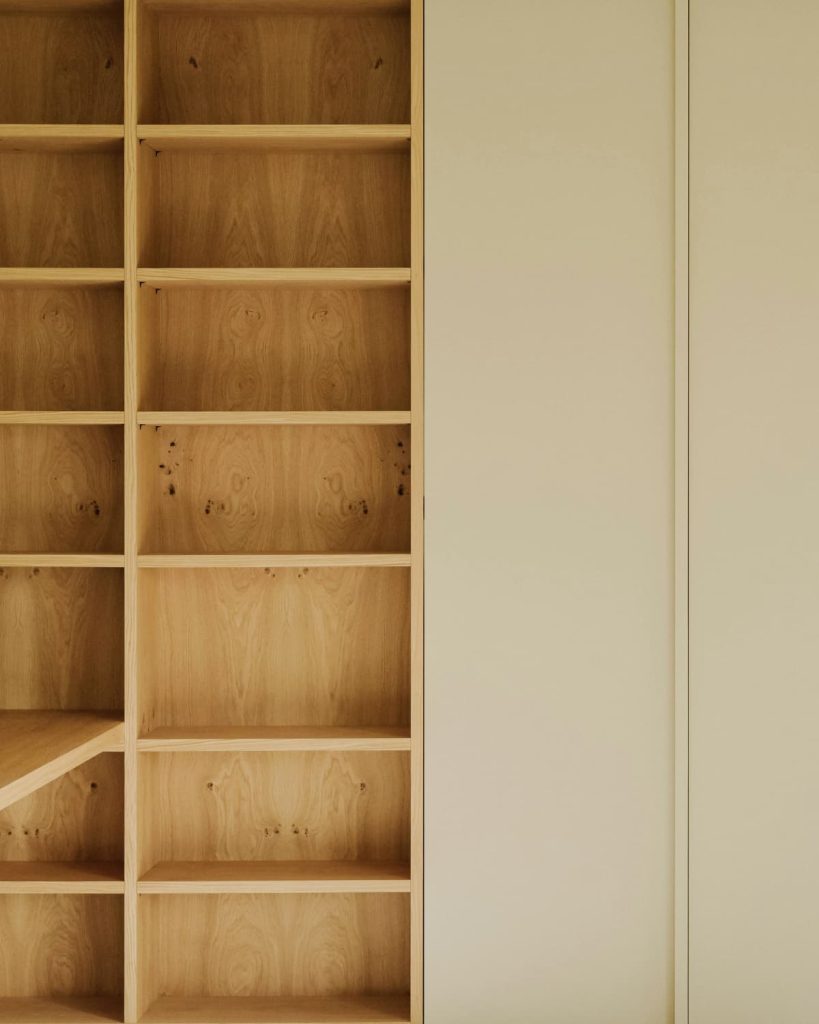 In small kitchens, it’s smart to dedicate one or two wider shelves rather than oversizing everything.
